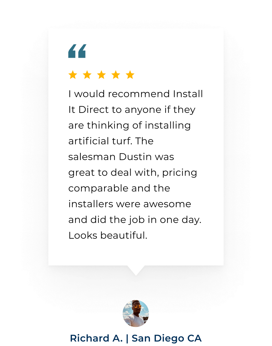 I would recommend Install It Direct to anyone if they are thinking of installing artificial turf. The salesman Dustin was great to deal with, pricing comparable and the installers were awesome and did the job in one day. Looks beautiful.